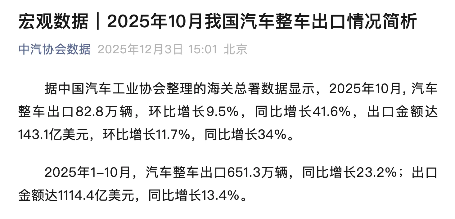 • 中汽協:10月汽車零部件產品出口金額達68.9億美元